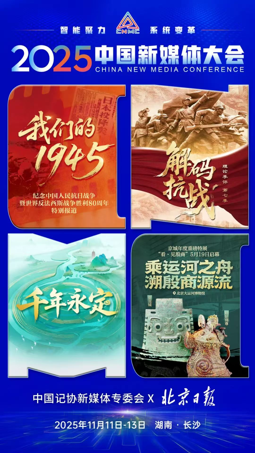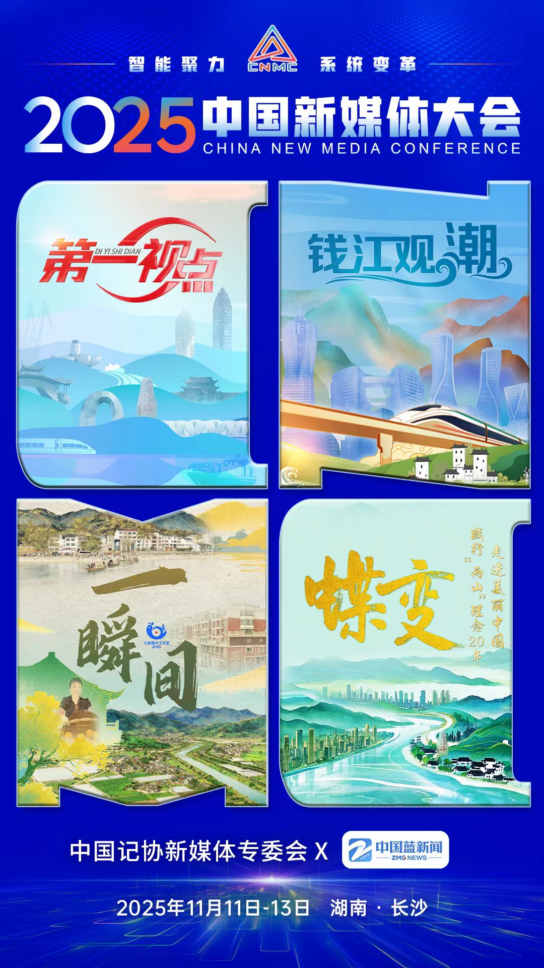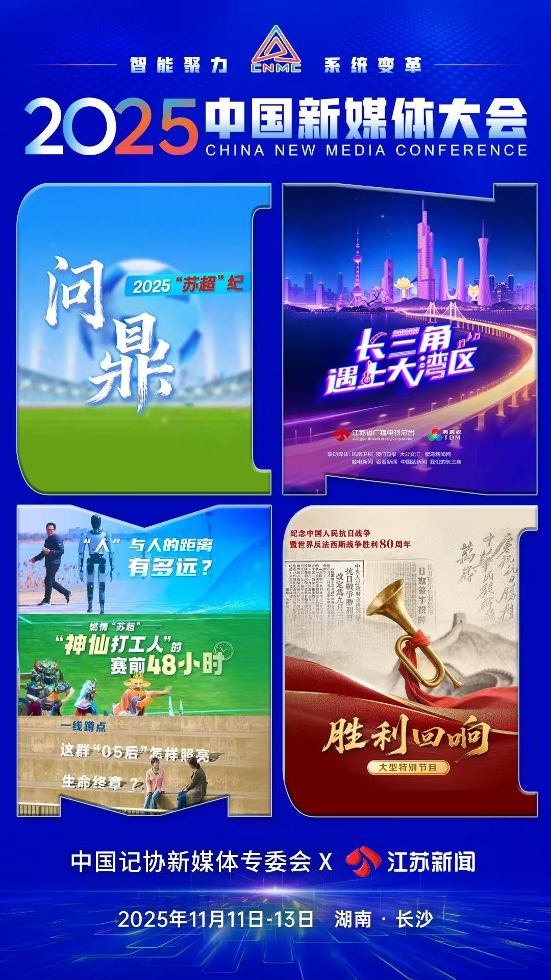 2025中国新媒体大会将于11月11日至13日在湖南长沙召开,中国记协新媒体专业委员会各成员单位纷纷推出“联名海报”为大会预热。