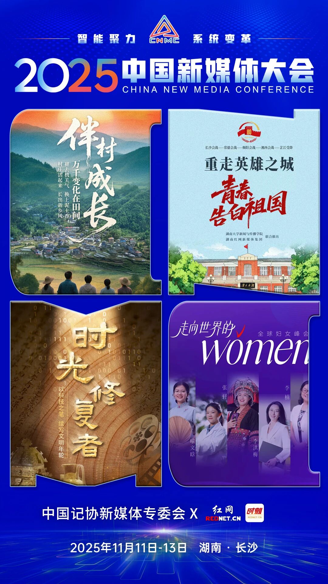 2025中国新媒体大会将于11日至13日在湖南长沙召开,中国记协新媒体专业委员会各成员单位纷纷推出“联名海报”为大会预热。